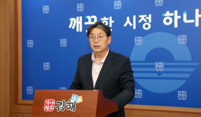 홍태용 경남 김해시장 당선인(국민의힘)이 9일 시청 브리핑룸에서 기자회견을 열고 소통과 통합을 강조하며 이같이 다짐했다.