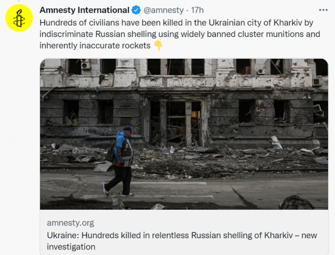 앰네스티는 침공 초기부터 러시아군의 집중 공격을 받은 우크라이나 제2의 도시 하르키우(러시아명 하리코프)의 민간인 피해 상황을 조사해 기록한 보고서를 이날 공개했다.