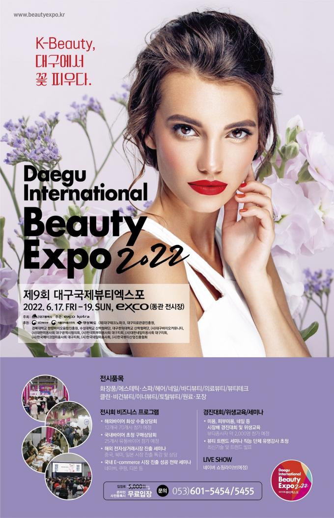 올해 제9회째를 맞는 대구국제뷰티엑스포는 영남권 최고의 뷰티 전문 엑스포로 화장품, 에스테틱, 헤어, 네일 등 뷰티산업 관련 제품 전시와 특별관 조성 확대, B2B 비즈니스 강화 등 뷰티 관련 업체 175개 사 303부스가 참가해 역대 최대 규모로 개최된다.