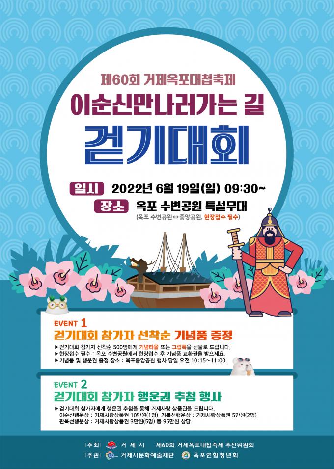 당일 현장에서는 선착순 500명에 기념타올 또는 그립 톡이 주어지고, 행운권 추첨을 통해 거제사랑 상품권도 지급한다.