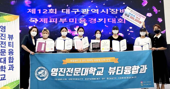 대상을 받은 장민경 학생은 "영진에 입학해 토탈뷰티를 배우며 피부에 대한 호감도가 높아져 이번 대회에 참가했다. 미용 대회 첫 출전이라 매우 떨렸으나, 지도 교수님의 응원 덕분에 자신감 있게 경기를 치렀다. 대상을 받는 순간 대회를 준비한 시간이 떠올랐고, 다시 도약해 전문가로 성장해야겠다는 각오를 되새겼다"고 전했다.