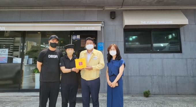 기장군 정관읍행정복지센터(읍장 김종천)는 20일 관내 소상공업체인 '더 맛있는 반찬'과 '정관마을이음-6호' 현판식 행사를 개최했다. 이날 행사에는 임현준 더 맛있는 반찬 대표와 김종천 정관읍장 등이 참석했다.