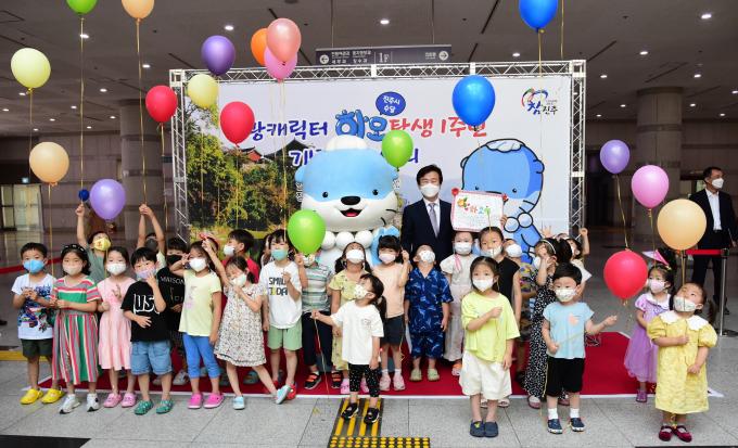 21일 열린 하모 팬사인회는 관내 어린이집 어린이 30여 명과 시청 방문 시민들을 대상으로 진행됐다. 사인회 후 조규일 시장이 축하 꽃다발을 전달하고 생일케이크를 자르며 지난 1년 동안 하모의 홍보활동 노고를 치하했다.
