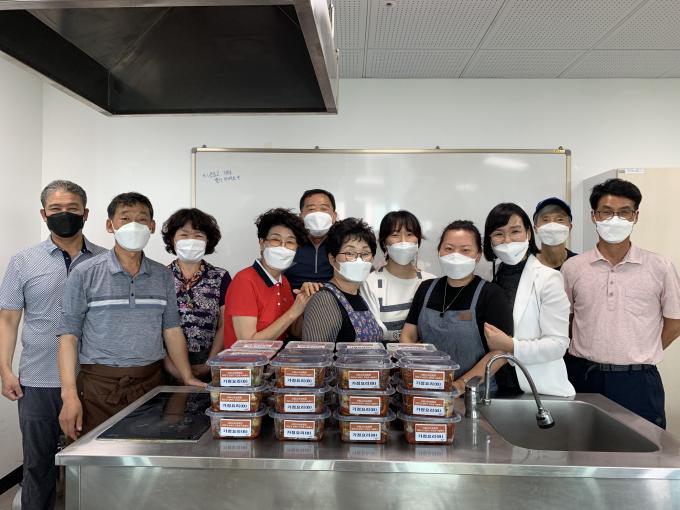 이날 여성회관 상반기 가정요리(B)과정 수강생 10여 명과 강사는 정성스럽게 만든 오이김치와 계란장을 사천시 종합사회복지관 재가복지 20세대에 전달했다.