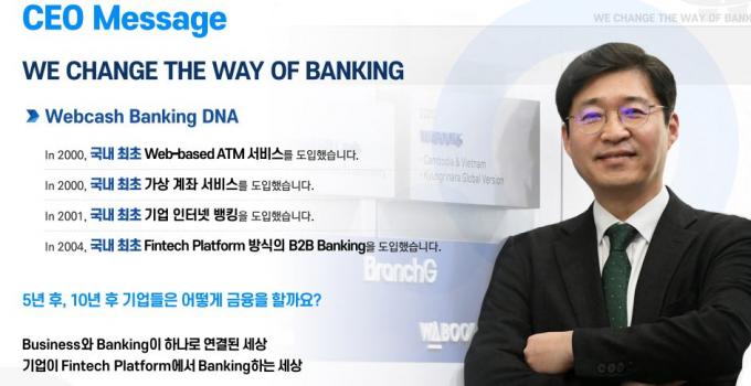 웹케시㈜는 1999년 창립 이후 국내 최초로 기업 전용 인터넷뱅킹을 구축하고, B2B 핀테크 업체 최초로 코스닥 시장에 상장된 기업이다.