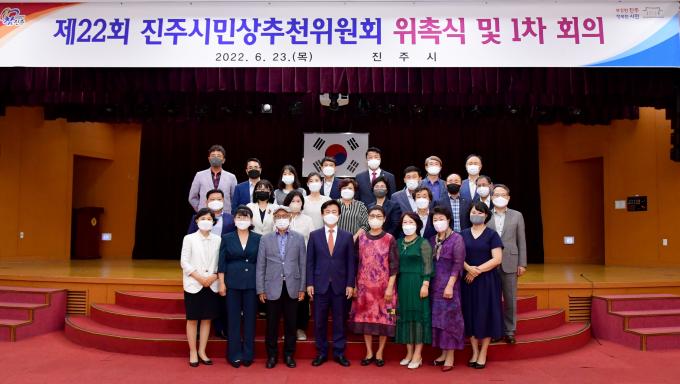 앞서 진주시는 23일 각계각층에서 전문지식과 덕망이 있는 28명으로 제22회 시민상추천위원회를 구성, 위촉식을 가졌다. 시상식은 10월 10일 시민의 날에 열린다.