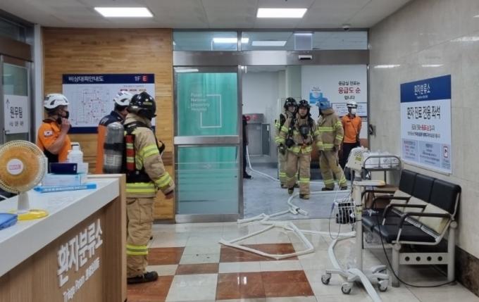 이날 방화로 인해 응급실 환자 18명과 의료진 29명 등 모두 47명이 급히 건물 밖으로 대피했다.
