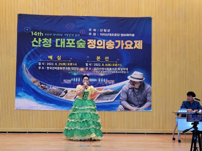주말인 지난 25일 한국선비문화연구원에서 진행된 제14회 산청 대포숲 정의송가요제 예심에 378명이 참여해 경합을 벌였다.