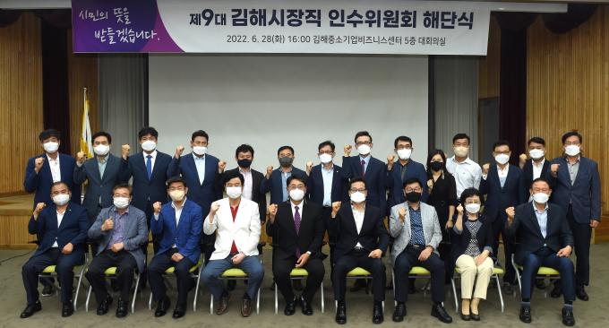 '꿈이 이어지는 따뜻한 행복도시 김해'를 슬로건으로 내건 홍태용 김해시장직 인수위원회(위원장 김재원)가 28일 해단식을 끝으로 공식 일정을 마무리했다.