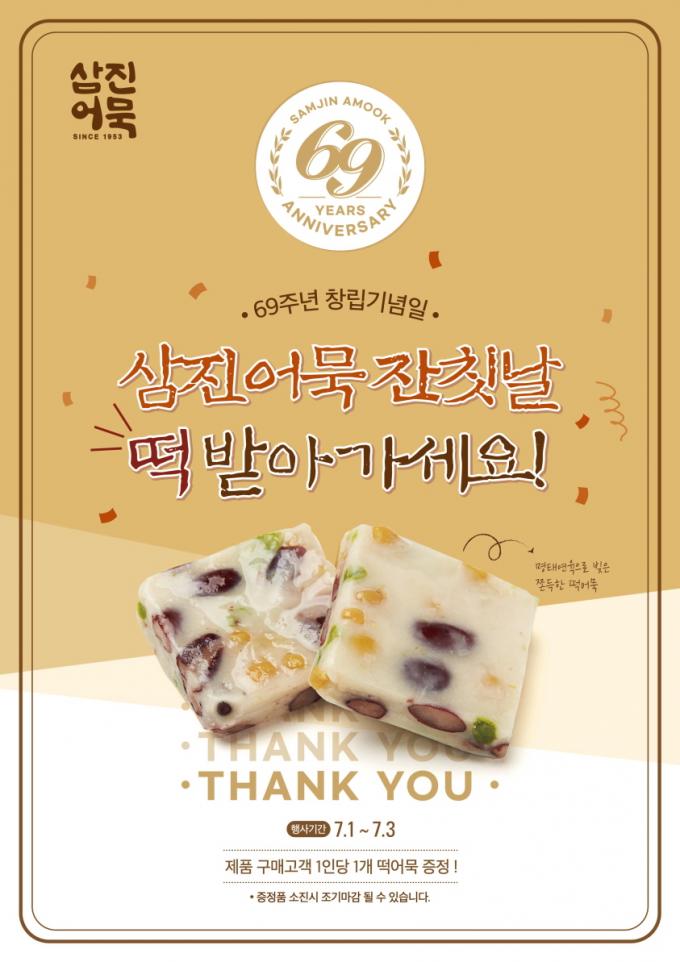 정성우 삼진어묵 마케팅본부장은 "69살이 된 삼진어묵의 잔칫날의 즐거움을 '떡어묵'을 통해 소비자와 나누고 싶어 해당 프로모션을 기획했다"고 전했다.