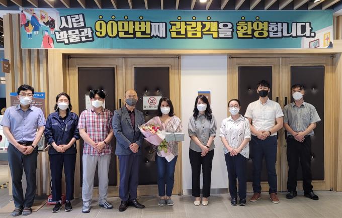 이날 박물관을 찾은 김기열(48·물금읍) 씨는 박물관으로부터 90만 번째 입장을 축하하는 꽃다발과 기념품을 받았다.