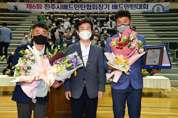 개회식에서는 배드민턴 발전과 생활체육 활성화에 기여한 진주시배드민턴협회 천인수 부회장과 박도범 부회장이 조규일 시장으로부터 감사패를 받았다.