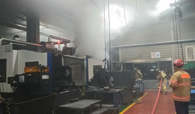 6일 0시 28분께 부산시 강서구 송정동에 있는 중장비 엔진부품 제조공장에서 불이 났다.