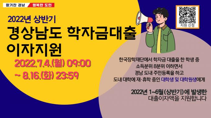 올해부터 대학원생 포함돼 지원 대상 확대 경남도(도지사 박완수)는 한국장학재단 학자금 대출 상반기(1∼6월) 발생 이자를 지원한다고 7일 밝혔다.