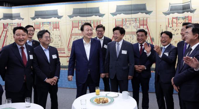 이날 만찬 모임은 대통령실 누리홀에서 비서실장과 수석(정무·시민사회·홍보·경제·사회) 5명 등이 배석한 가운데 오후 6시부터 90분 동안 진행됐다.