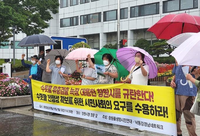 시민단체인 창원물생명시민연대와 낙동강경남네트워크는 11일 창원시청 앞에서 기자회견을 열고 "외부에 알리지 않고 행정 독단의 초기대응이 사태를 키웠다"고 비난했다.