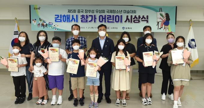 김해시는 21일 시청에서 '제5회 중국 장쑤성 우성회 국제청소년 미술대회' 지역 참가 어린이에 대한 시상식을 열었다.