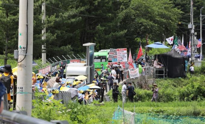 경남 양산경찰서는 '자유연대'가 양산시 하북면 지산리 평산마을 문 전 대통령 사저 앞 도로에서 열겠다는 집회에 대해 금지 통고했다고 23일 밝혔다.