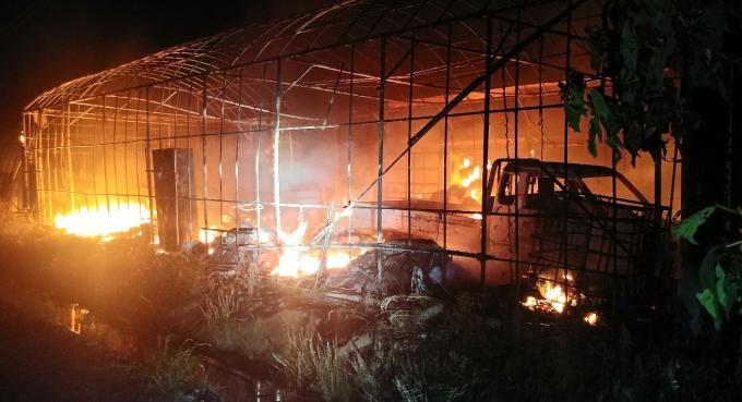 ▲ 27일 0시 20분께 부산 강서구 봉림동 비닐하우스에서 발생한 화재 현장 [부산소방본부 제공]