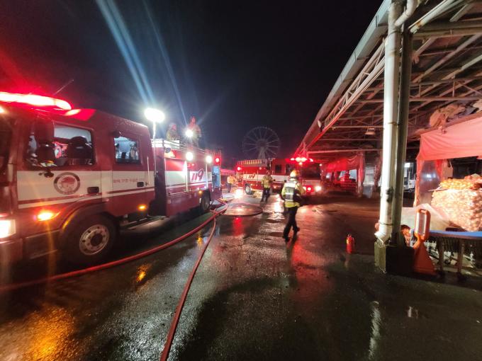 30일 울산소방본부에 따르면 전날 밤 11시 25분께 울산시 남구 삼산동 농수산물도매시장 2동문쪽 판매 건물에서 불이 나, 280여만 원(소방서 추산) 상당의 재산피해를 내고 35분만에 진화됐다.