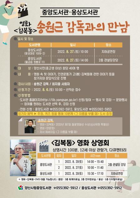 중앙·웅상도서관 '송원근 감독과의 만남'…6일부터 접수