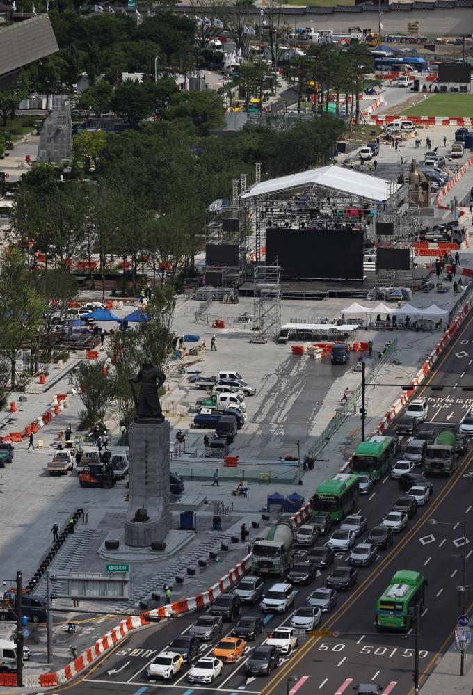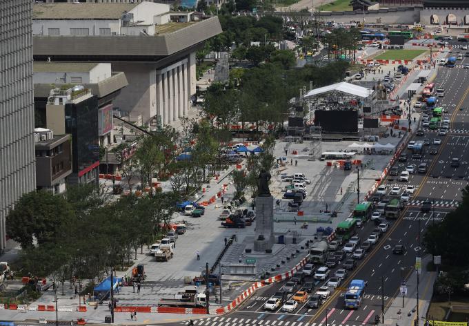 대한민국 역사·문화 중심공간인 '광화문광장' 재개장을 이틀 앞둔 4일 막바지 준비작업이 한창이다. 광화문광장은 착공 1년9개월 만인 오는 6일 재개장한다.