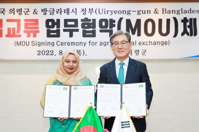 이날 협약식에는 방글라데시 정부기관을 대표해 주한방글라데시 모끼마 베곰(Mokima Begum) 참사관이 직접 의령군청을 방문했다.