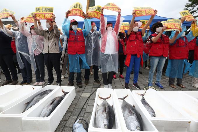 참다랑어 어획량 쿼터제 폐지 촉구하는 어업인들