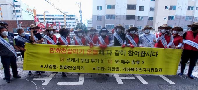 기장읍은 동부리에 위치한 만화천을 친수공간으로 조성하기 위해 지난해부터 수생식물인 부레옥잠을 자체 배양해 만화천 바닥에 이식해 오고 있다.