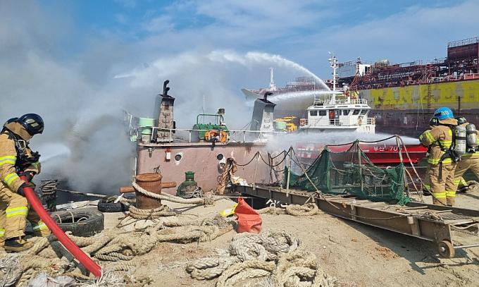 부산 감천항서 900톤급 선박 불…용접작업 5명 화상
