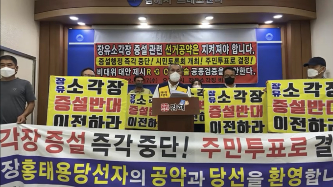 비대위 "거짓 공약으로 표 도둑질한 중대한 사기행각" 강력반발 홍태용 경남 김해시장이 장유1동 자원순환시설(이하 장유소각장) 증설 문제와 관련한 주민투표 약속을 지키지 않아, 해당 주민들로부터 큰 반발을 사고 있다.