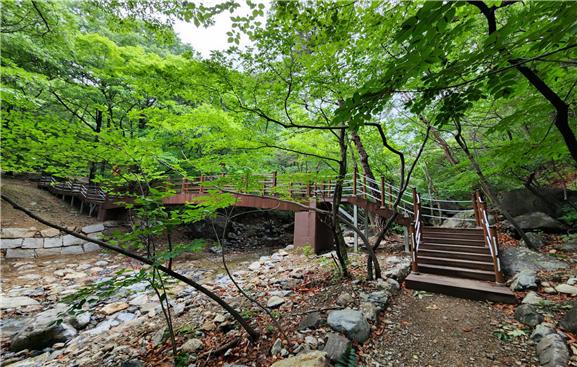 대청계곡 누리길 조성 2단계 사업은 지난해 공모사업에 선정, 국비 7억 원을 확보해 총사업비 10억 원으로 올 3월 누리길 1.2㎞를 조성하는 프로젝트다. 이로써 대청천 생태하천∼장유폭포∼장유사∼용지봉으로 이어지는 총연장 8㎞의 누리길과 등산로가 완성됐다.