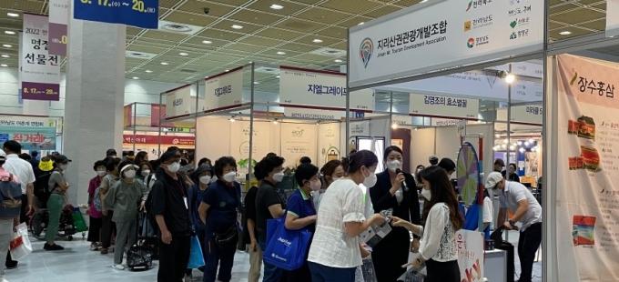 지리산권관광개발조합은 지난 17일부터 서울 코엑스에서 열린 '2022 한가위 명절선물전'에 참가해 지리산권 5개 시·군(남원·장수·구례·산청·함양)의 대표적인 농특산물을 홍보·판매하고 있다. 이 행사는 20일까지 이어진다.