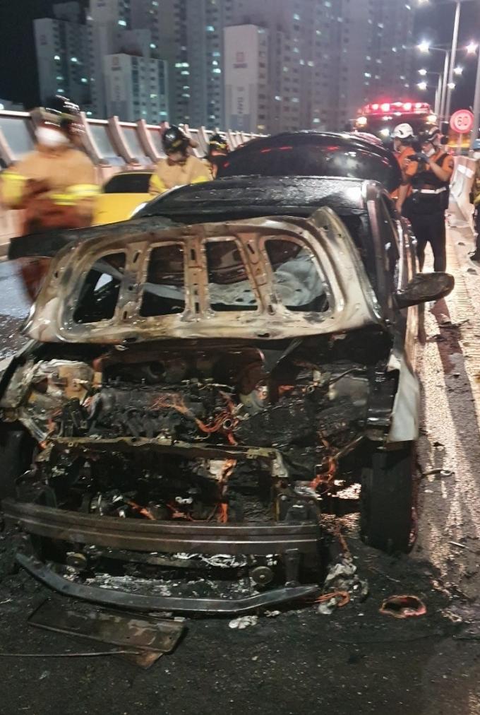 이 차량은 도로 한복판에서 전소됐지만, 40대 운전자는 긴급히 대피해 다치지 않았다.