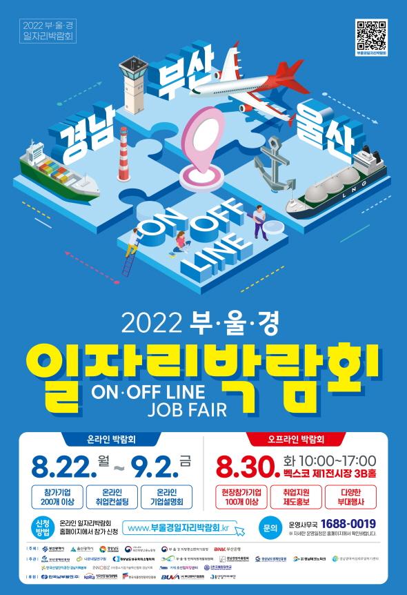 온라인 박람회는 22일부터 9월 2일까지 2주간 진행된다. 구직자들은 부울경 일자리박람회 누리집에서 맞춤형 채용정보를 바탕으로 입사지원과 화상 채용 면접에 참가할 수 있다.