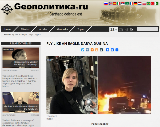 게다가 최근 '푸틴의 브레인'으로 알려진 알렉산드르 두긴을 노린 자동차 폭발로 그의 딸 다리야 두기나가 사망하면서 이런 관측은 더욱 힘을 얻게 됐다.