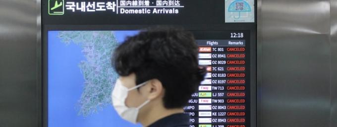 5일 오전 8시 기준 아침 6시 50분 제주행 에어부산 BX8101편을 시작으로 항공기 운항편수 134편 중 86편이 사전 결항됐다. 티웨이항공의 경우 이날 모든 항공편이 결항됐다.