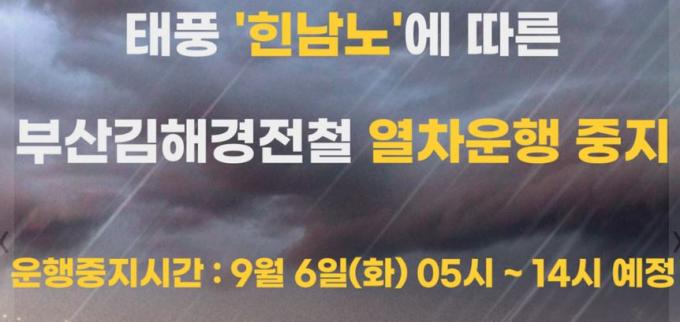 경전철 측은 6일 오후 태풍이 지나간 뒤 선로 상태와 지장물 등을 점검, 운행중단 시간을 추가로 더 늘릴 지 여부에 대해 재공지할 방침이다.