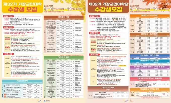 기장군(군수 정종복)은 13∼14일 이틀 동안 '2022년 제3기 기장군민대학·기장군민어학당' 수강생을 모집한다.