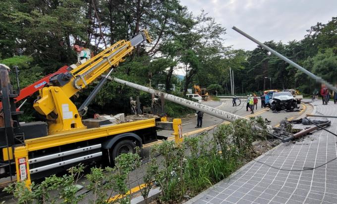 또 인근 200여 가구에 정전이 발생, 한전이 복구작업을 벌이고 있다. 정전 복구는 이날 자정께 가능할 것으로 한전 측은 전했다.