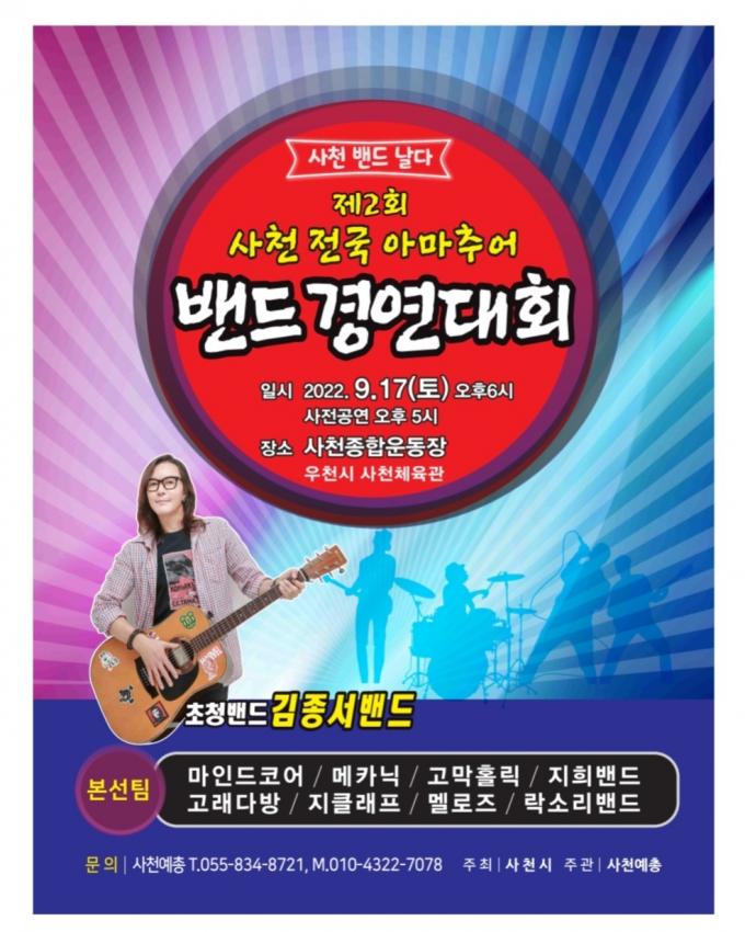 사천시(시장 박동식) 주최, 사천예총(지회장 김용주) 주관으로 열리는 이번 대회에는 전국에서 지원한 총 50팀의 밴드가 본선무대에 진출하기 위해 치열한 경쟁을 펼쳤다.