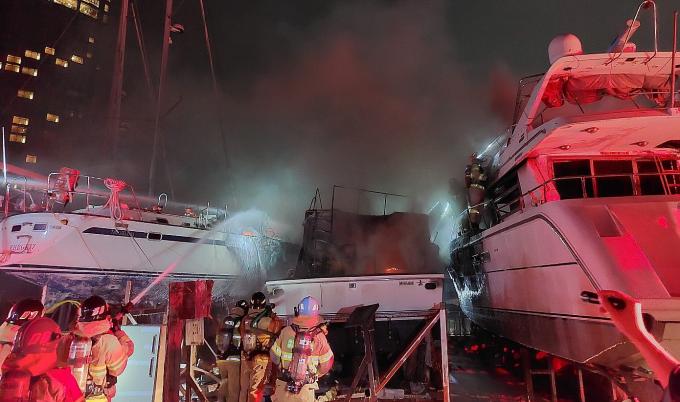부산 수영요트경기장서 수리중인 요트 화재…3척 피해