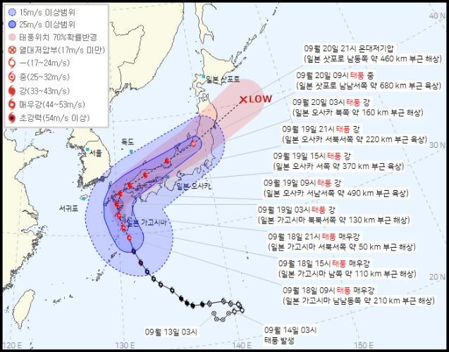 앞서 중앙재난안전대책본부는 18일 낮 12시를 기해 태풍·호우 위기경보 수준을 '주의'에서 '경계'로 상향했다.