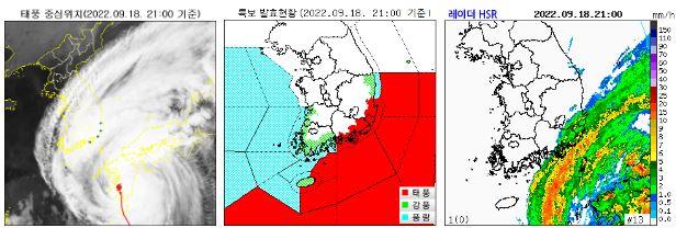 19일까지 경상권 해안의 경우 150㎜ 이상의 폭우 가능성도 있다. 기상청은 19일 새벽부터 낮 사이 남해안과 부산, 동해안 일원에 강풍으로 인한 너울성 월파 피해에 대비할 것을 강조하고 있다.