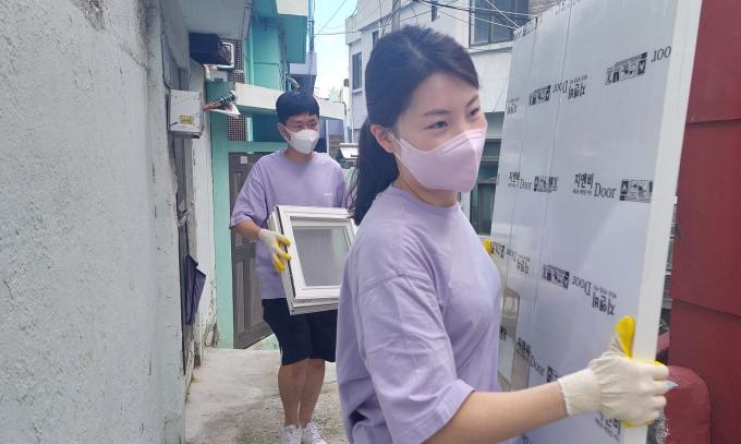 이날 HUG 직원들은 부산시 사하구에 위치한 노후주택을 찾아 가구와 물건 등을 정리해 주고, 자재 이동과 폐기물 처리 등 보수 공사 보조 작업을 벌였다.