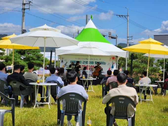 청명한 가을 날씨 속에 열린 이날 음악회는 근무시간을 고려해 평일 점심시간에 열렸다. 지역에서 활동하는 전문 연주자들의 바이올린·첼로·피아노 3중주에다 애절한 생황·해금 연주가 더해졌고, 신명나는 태평소 연주로 마무리됐다.