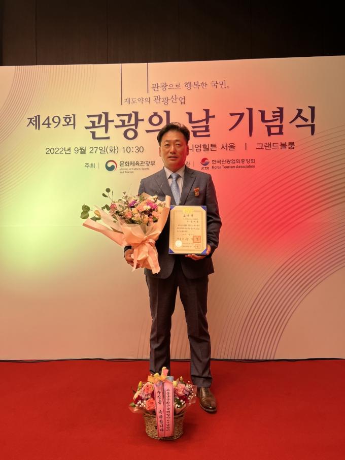 28일 하동군에 따르면 김태종 해설사는 한국광광협회중앙회 주관으로 전날 서울밀레니엄 힐튼 그랜드볼룸(B1F)에서 열린 제49회 관광의 날 기념식에서 대통령 표창을 받았다.