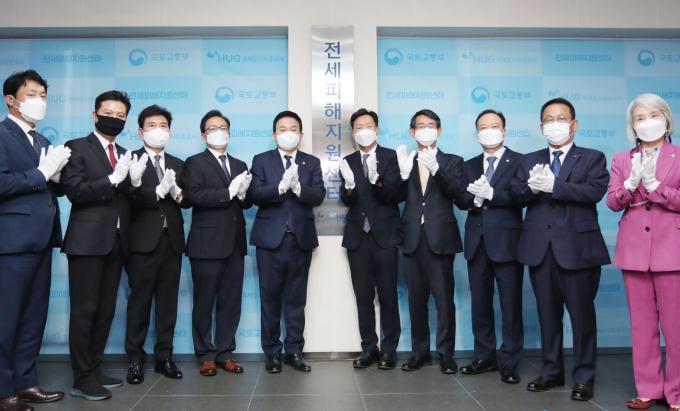 이번 지원센터 개소는 지난 1일 국토교통부가 발표한 '전세사기 피해방지방안'의 일환으로 추진됐다. 개소식에는 원희룡 국토교통부 장관, 윤희근 경찰청장, 이병훈 HUG 부사장 등이 참석했다.