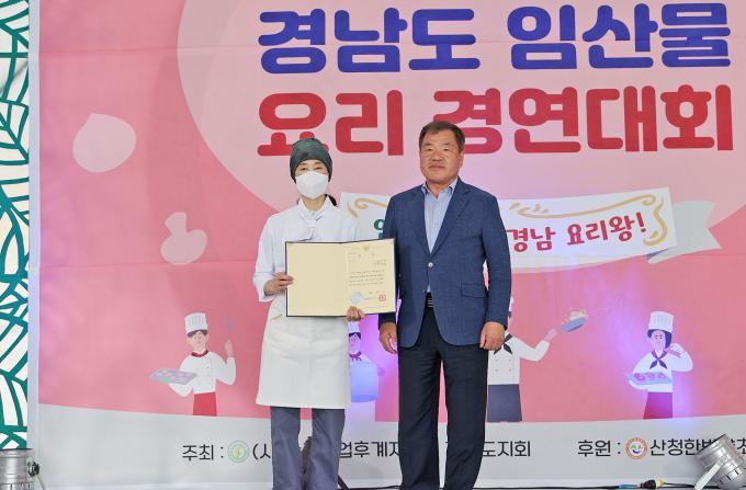대회 결과 임업후계자협회 산청군협의회 변윤희 씨가 대상을 차지했다. 변 씨는 지역에서 생산되는 표고버섯을 주재료로 약초육계버섯전골와 잎새단자를 선보여 약초·닭·버섯 등 맛의 조화를 이뤄내면서 높은 평가를 받았다.
