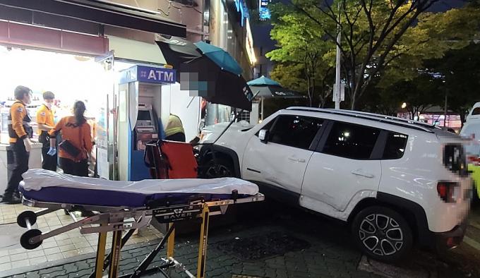 이 사고로 SUV차량이 인근 편의점을 충격하면서 지나가는 50대 남성이 다쳐 병원으로 옮겨졌다.